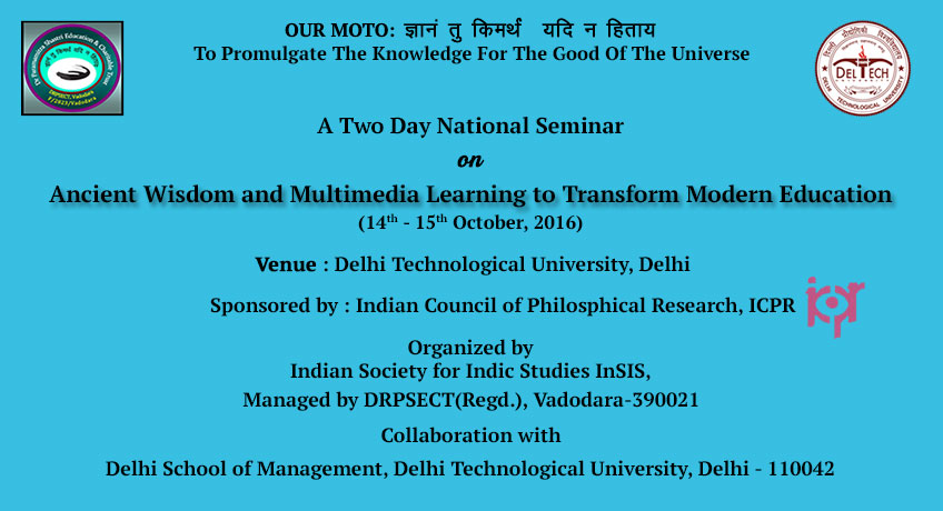 New Delhi Campus of Open Learning C-2, Keshav Puram, University of Delhi, New Delhi, Delhi, IndiaThis event has passed. To know the highlights, click on the link below. Highlights of National Conference 2016 Ancient Wisdom & Multimedia learning Transforms Modern Education Human beings are multilayered creatures created of the all-pervading Divine Energy. Our living experience is defined by material, mental and spiritual planes of existence. The realization of the connect with the divinity within and without has been the goal of ancient Indian wisdom. Over the past many centuries humanity has drifted away from the spiritual plane of existence. As a result of the disconnect with the spiritual energy, the baser instincts of the human...